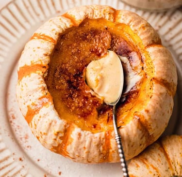 Estos ingredientes no solo son los básicos, sino que también evocan el sabor del otoño, haciendo que el Pumpkin Crème Brûlée sea un postre inolvidable.